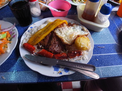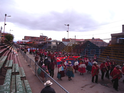 早朝腰が痛くて目が覚める。だから座席せめーんだよ!8時間の時を経てオルーロの町に向かい列車は速度を落とす。町としては中規模のこれといって変哲のない町である。だが今この時期だけは全く事情が違うのがここオルーロだ。 オルーロのカーニバルは、ブラジルはリオのカーニバル、ペルーはクスコのインティライミと並んで南米三大祭とされている。是非見たかったのだが、フライトの予定上それは適わず……。今週末の開催に向けて、様々な衣装に身を包んで各チームがリハーサル演舞を行っていた。雰囲気としては、よさこいや阿波踊りに近いんだろうね。南米の各地から集まってきている各団体が独自の音楽を演奏しながら独自の衣装、踊りで練り歩いていく。うわー、これ絶対本番にビール片手に見たら楽しかっただろうなぁ。 ![]() ↑週末開催に向けて準備も佳境だ。 ![]() ↑おっちゃんおばちゃんも踊り手として活躍。 ![]() ↑これは見たかった!むーん。 ラパス最終 そしてオルーロからさらにバスで荒野を走ること4時間、無事ラパスに戻ってきた。帰ってきたよエルソラーリオッ!! A君、K君と三人部屋に荷を解き、エルアルトの古着市に行ったり、ボリメシ食ったりして、一日を費やしていく。 ボリビアのメシはペルーのような繊細さはなく実に大雑把。ステーキにフライドポテトにライスみたいな、ジャンクなメシだけど、男的には全然オーケ。あと、インディヘナは若い子は凛としてエキゾチック、かわいい子が多い。でも年取るとみんなおばプロみたいなでっぷりしたのになっちゃうんだろうな。それは恐らくこのジャンクなメシがゆえのことだろう。夜も、ボリメシ食って宿の旅行者と酒飲んで、んーーー、最後の夜だな! 今回も、実に刺激に溢れ充実した旅だった。これだから止められないんだよな。 ![]() ↑こんなん三食くってれば太るわ。 ![]() ↑ボリビアが誇る最強の軽食、サルテーニャ。 |