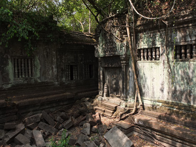 朝8時、トゥクトゥクに乗り、バンテアイ・スレイに向け出発。ドライバーはホンダをこよなく愛するティナ。自動車メーカーのホンダなのかサッカー選手のホンダなのかは定かではない。知る人ぞ知る事実だが、東南アジアでは「味の素」が超メジャー食品調味料として流通していてTVCMもバンバン打っている。そのCMで流れるフレーズ「アジノモト!」と言うと、彼はCM通りに「ハイッ!」と返してくれる(笑)。 赤土の未舗装の道路を砂埃を巻き上げて走り、砂塵にまみれて真っ赤になるためトゥクトゥクでの長距離観光は控えるべき……ということは今やなく、恐らくここ数年でだいぶ交通インフラ事情も良くなったんだろう、普通に快適快適。むしろ風を受けて気持ちいいです。 ![]() ↑ティナバイクは快適。 トゥクトゥクをすっ飛ばして2時間ほど走り、バンテアイ・スレイに到着。この遺跡は赤褐色の石で造られた遺跡であるため、太陽の光を正面に浴びる午前の時間帯が最も美しいとされる。こじんまりとした遺跡ではあるのだが、日本語で「女の砦」と訳される繊細で緻密な建造物は、アンコールまわりの遺跡とは一線を画す雰囲気をまとっており、シェムリアップ中心地から遠く離れているにも関わらず強い人気がある。中でも、女神を意味するデヴァターの彫像は、「東洋のモナリザ」という素晴らしい栄誉を以て讃えられているんだと。 ![]() ↑赤く輝く遺跡だ。 ![]() ↑彫刻の細かさも異常。 しかしこの遺跡は金持ってるね〜。チケットオフィスや土産屋、遺跡に至る導線の作り方とかめちゃくちゃ綺麗に整備されている。電子チケットだし。女神が微笑んだんだね。小さい遺跡なので、特に説明も受けないしガイドブックも読まない適当な俺たちは数十分で観光を終えてしまう。どれがデヴァターなのかも最後までよくわからなかった(笑)。ティナの姿が見えないので、周辺にある村なんかを探しがてら歩く。こういうゆるい時間があるからこそ自由旅行はいいんだよな。 ![]() ↑チャリ明らかにでかい。 ベン・メリア さて、そこからさらに2時間以上の時間をかけ、ベン・メリアに向かう。道中、彼方まで広がる乾いた平原や、生い茂るジャングルを交互に切り込みながら進む。途中で寄った民家の人々や、合間に歩いて出会う人々、その笑顔の深さは得難いものがある。気持ちの良い時間だ。わずか30年程度前に、近代屈指のジェノサイドが展開された国だとはとても思えないな。いや、だからこそのこの優しさを持った距離感なのか。 事実は小説より奇なりというか、国民の20%もの人間がいち政党に虐殺され尽くすだなんてあまりにも馬鹿げていて現実感に欠ける。だが、歴史上ではごく稀に、いくつかの政治、軍事、人物などの状況がカチリとはまった時、ありえないことが現実として歯車を回す時がある。カンボジアの大量虐殺はまさにそれで、表層的にはアジア後進国ながらも農業や観光業を軸に明るく暮らしているようには見えるが、たかだか30年ちょい昔にあった圧倒的な事実はそう簡単に消えるものではないだろう。何してたって殺されたんだから。眼鏡かけてるだけで知識層扱いで殺されたんだから。今だっていたる土地で地雷が撤去され切れずに残っているし、郊外で土地を掘れば人骨がまだまだ出るとも言われている。当時クメール・ルージュでキリングマシーンと化していた少年兵たちだって働き盛り世代の一般ピープルとして魂の枷を負ったまま暮らしているのだろうし、街中いたるところで会うおっさんやおばさんたちは表面上穏やかに見えていたとしても、その地獄を通ってきているんだ。 ![]() ↑世代は受け継がれる。 閑話休題。 いや、閑話休題するにしてはあまりにも大きい話題だけれども。 昼過ぎにベンメリア遺跡に到着。腹ごなしをしていざ遺跡内へ。俺は正直アンコールの中心遺跡よりも、このベンメリアに興味があった。いまだ整備されていない崩れたままの遺跡からは、より強く森と共生する文明の息吹を感じることができるらしい。そして、その言葉に偽りはなく、遺跡の崩れぶりは予想を大きく超えていて、迷路のように入り組んだ、ガラガラに崩れた石や遺跡の屋根の上を歩いて進む。「蓮池」を意味するこの遺跡、木々に覆われどこか薄暗く苔むしたその世界観は見事で、やはりここに来ておいて良かったと思ったのであった。遺跡のハイライトは間違いなく此処だな! ![]() ↑崩れた岩の上を歩いていく。 ![]() ↑苔生した具合がたまらない。 夜、ドライバーのティナと友人のティエンと4人でメシを食いに繰り出す。チュナンダイというカンボジア定番の鍋料理とビールをたらふく。鶏ガラがこれでもかというほど効いているコクのあるスープに野菜、肉、つみれなどの具をどんどん放り込んでいく。これがマジでうまい!!でも、現地人御用達の普通の屋台だったけど、けっこういい値段するんだよね。ひとしきり食ったら締めにラーメンをぶち込んでご満悦。 ![]() ↑ご