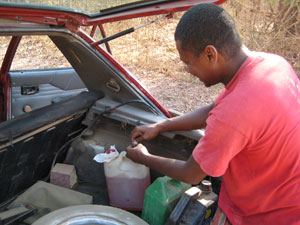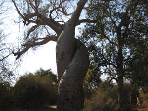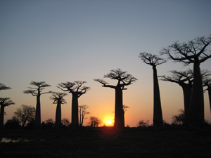 さらばキリンディー、カップルの車で保護区を後にする。本来客はオレたちなんだが、もはやオレたちが彼らのデートを邪魔しているみたいで申し訳ない気持ちだ。 砂埃ロードをひた走る。途中途中で道端に止まって給油するんだが、なんとこの車、ガソリンが後ろのトランクに備え付けた小さいポリ容器に入れて積んであって、手作りポンプ式の給油法だ。ウケる。ちょっとずつちょっとずつ足していくんだな。保護区を抜けしばらく進むと段々バオバブの原生林が目につくようになってくる。ここらで一番樹齢があるという大きなバオバブ〜♪二本の幹が絡み合っている「愛し合うバオバブ」ラブバブ〜♪そして、ボーイバオバブとガールバオバブ〜♪これは、いわゆる性器の形に似てる二本のバオバブについている愛称なのだが、ここでマダガスカル淫語をマスターしている我々は、「リッティーバブ〜♪」「ラカータバブ〜♪」と喜んでいると、ドライバー彼女のツボにモロ入ったらしく爆笑をかう。下ネタはやはり万国共通だ。 ![]() ↑ガソリン補給中 ![]() ↑ラブバブ〜♪ バオバブ街道 そして陽が沈むいい感じの時間帯にバオバブ街道に到着。ここは圧巻だ。時間が少しあったので近くの村まで歩いていったり数年間放置されているであろうブルドーザーでシュールな写真撮ったりしていよいよサンセット。 大地に沈む夕陽。日本では想像し得ない形状、バオバブのシルエット。本当に別惑星のようだ。砂塵舞う赤い大地に突き出るバオバブ。これを見るためにここまで来たんだ、奮えるぜ。 ![]() ↑静かに燃える風景 ![]() ↑家路 夜、宿に無事到着。さすがに疲れたなぁ。シャワーを浴びたら金ほとんど残ってないのにビールをガブガブ飲んで寝る。グッドナイト。 |