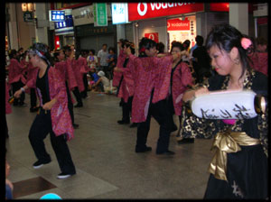 夕方、高知駅に到着・・と同時にすさまじい夕立が!!うぉー、マジ萎えるんですけど。雨の中見てるのは辛いんですけど。あんまさ、いや、凄いとは聞くけど別に正直そこまで期待してないし。勧められたし高知来てるし見るけどさ〜、実際どの程度なのよ!ってのは正直あった。雨の中歩いてもしょうがないから駅前でなんとなく時間つぶしているとやっとこさ止んできた!まー行ってみるかぁ。 しかしオレは度肝を抜かれた。そこにあったのはまさに本物の祭だった。人々を熱狂・興奮させ、その空間をどこまでも高めていく素晴らしい瞬間がいたるところにあった。「連」という参加団体が、各々の踊りや衣装で観客を魅せる。各連一台のトラックが先導し、そのトラックにところ狭しと積み上げられたスピーカーから、音楽や煽りが飛び交うのだ。それに合わせ連のメンバーが一心不乱に踊り狂っている。凄い!おもしろすぎる!そんなんが次々に登場してくる。その連も多様で、学生中心の派手なものから、小さなお子さんが中心のかわいらしいもの、日韓共同でやっているものから、凄腕のおっさんたちを集めたフュージョン系のバンド演奏をそのまま音楽にしているところもある。本当に様々。見ていて飽きないっすわー。 ![]() ↑どの連も個性的でした。 ![]() ↑参加してぇ!! 昔を偲ぶ なんというかね、これはね凄くなつかしい感覚もある。そう、これは高校体育祭での仮装やってた時に感じたような感覚だよ。あの10分間の演技時間の中にオレたちの青春を詰め込んだ仮装。あの感覚に近いのかもしれない。そりゃオレは実際よさこいを見てる側だから推測だけどさ、それくらい情熱と真剣さを感じるわー。終わった後とかみんなすげぇ泣くんだろうなー。 ![]() ↑美容院団体の連。みんなクソかわいい。 いやぁ、舐めてた。マジすさまじい祭だったよ。時間が合えばわざわざやって来てまた見たいなーとすら思わせるほどのものです。やっぱ祭はいいね!高松へとひとり戻る電車とか妙に切なかった。あの饗宴が、オレの高校の思い出を次々と甦らせる。心ん中の扉を開きやがって、よさこいめ。まったくしてやられたわ。 |
